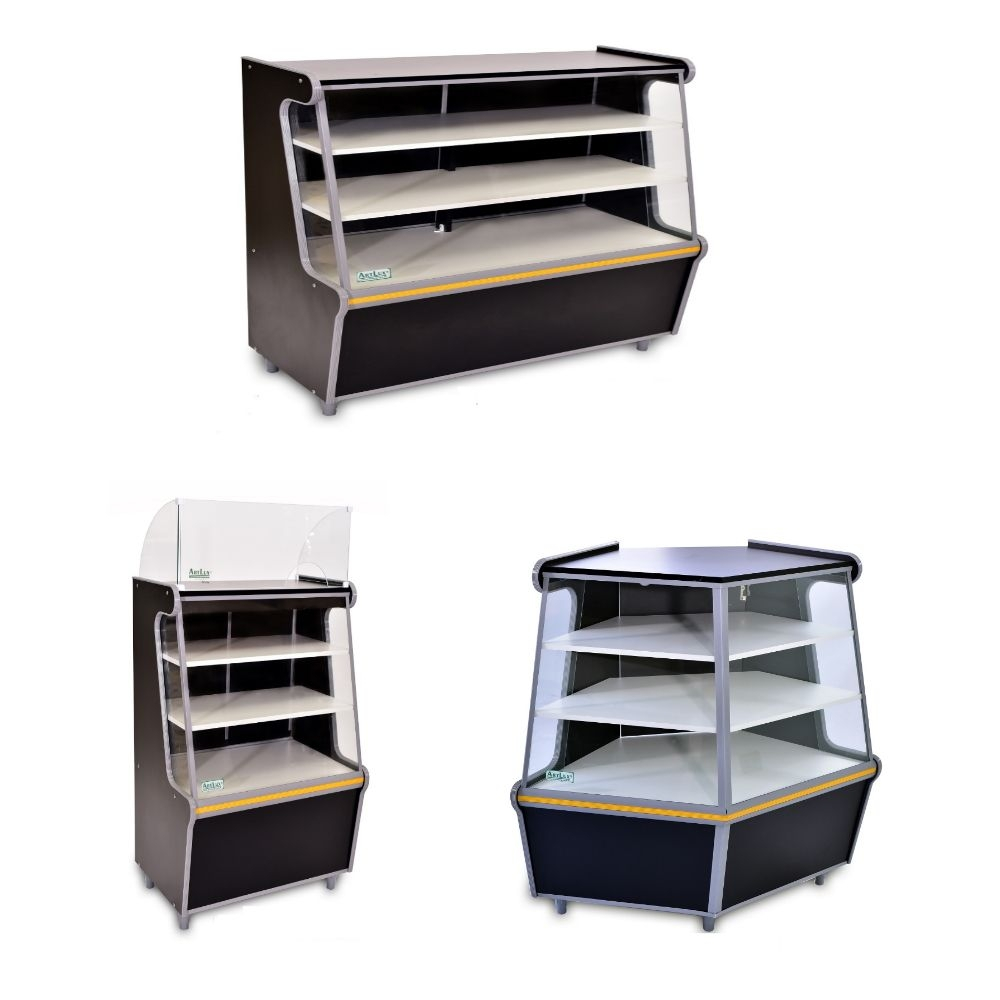 Balcão seco para exposição de produtos que não precisam de refrigeração. Tampão revestido em MDF, vidro visorâmico temperado 4 mm. Melhor custo/benefício. Principal diferencial dos produtos Artlux sempre foi o preço muito acessível resolvendo a necessidade do cliente. Sustentabilidade: Produtos desenvolvidos com material certificado e madeiras recicladas. Ideal para padarias, mercearias, lanchonetes, e vários outros estabelecimentos que necessitam de expor mercadorias em geral.