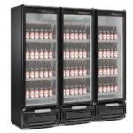 Cervejeira Expositora 3 Portas GCBC1450 Gelopar. Cervejeiro vertical 3 portas. Refrigeração e exposição de bebidas e produtos refrigerados em geral. Portas de vidro duplo temperado baixo emissivo e fechamento automático. Iluminação interna de LED. Refrigeração por ar forçado com serpentina aletada. Freezer para bebidas com controlador eletrônico digital com indicador digital de temperatura e degelo automático (frost free). Temperatura: -6°, -4°, 1° e 3°C.