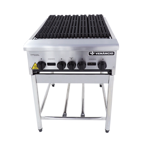 A Charbroiler Venâncio Profissional a Gás conhecida como chapa grill, é ideal para grelhar carnes, peixes e aves. Tem seu controle individual de queimadores, lhe trazendo uma melhor experiência no momento de preparar deliciosos pratos, tendo seu fácil acendimento através da chama piloto ao lado de cada queimador. Possui pés em aço carbono cromado com regulagem de altura. Além da limpeza fácil.
