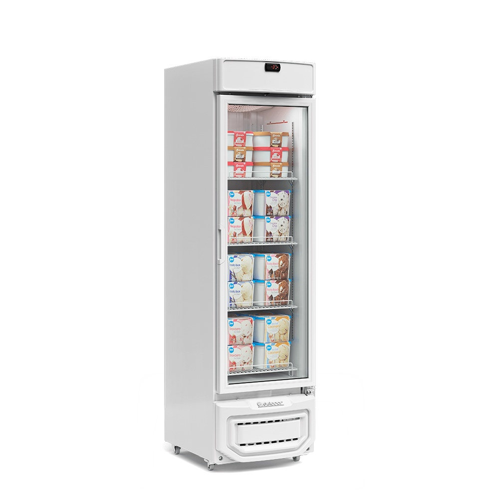 Desenvolvido especialmente para o uso em estabelecimentos comerciais como restaurantes, lanchonetes e bares, o Freezer/Expositor Vertical gldf é ideal para manter sorvetes e produtos congelados à temperaturas de -18º a -20 ºC, adequadas para o consumo.