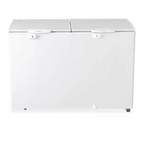 Refrigeração: Estática com Serpentina. Temperatura: -16 a -20C. Degelo: Manual. Controle de Temperatura: Termostato. Revestimento Interno: Aço pré-pintado branco. Revestimento Externo: Aço pré-pintado branco. Tampas: Cegas, basculantes com puxadores. Prateleiras aramadas. Placa Fria. Pés niveladores. Condensador estático. Grade divisória interna. Fechadura com chave.