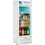 Com vidro temperado duplo de baixa emissividade, esse expositor possui termostato com temperaturas de +1° a + 7°C, porta com fechamento automático, iluminação fluorescente e prateleira com três níveis reguláveis e inclináveis com as seguintes capacidades: Latas 350ml: 2×48 / Pet 600ml: 42 / Long Neck 355ml: 56 e degelo frost free.